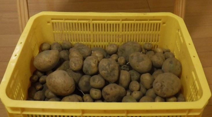 今年の春に植えたジャガイモがすくすくと育ち、収穫日をむかえました。子ども達は「おいもは土の中にいるんだよね!」「いっぱい採るんだ!」と大張り切り!早速ジャガイモの茎を引っ張ってみると…「おいもいたー!」という子がいたり、「掘るとたくさんあったよ!」「大きいのみーつけた!」と大喜び!!カゴいっぱいに採れたジャガイモを見て、嬉しそうにしていたもも組の子ども達でした。